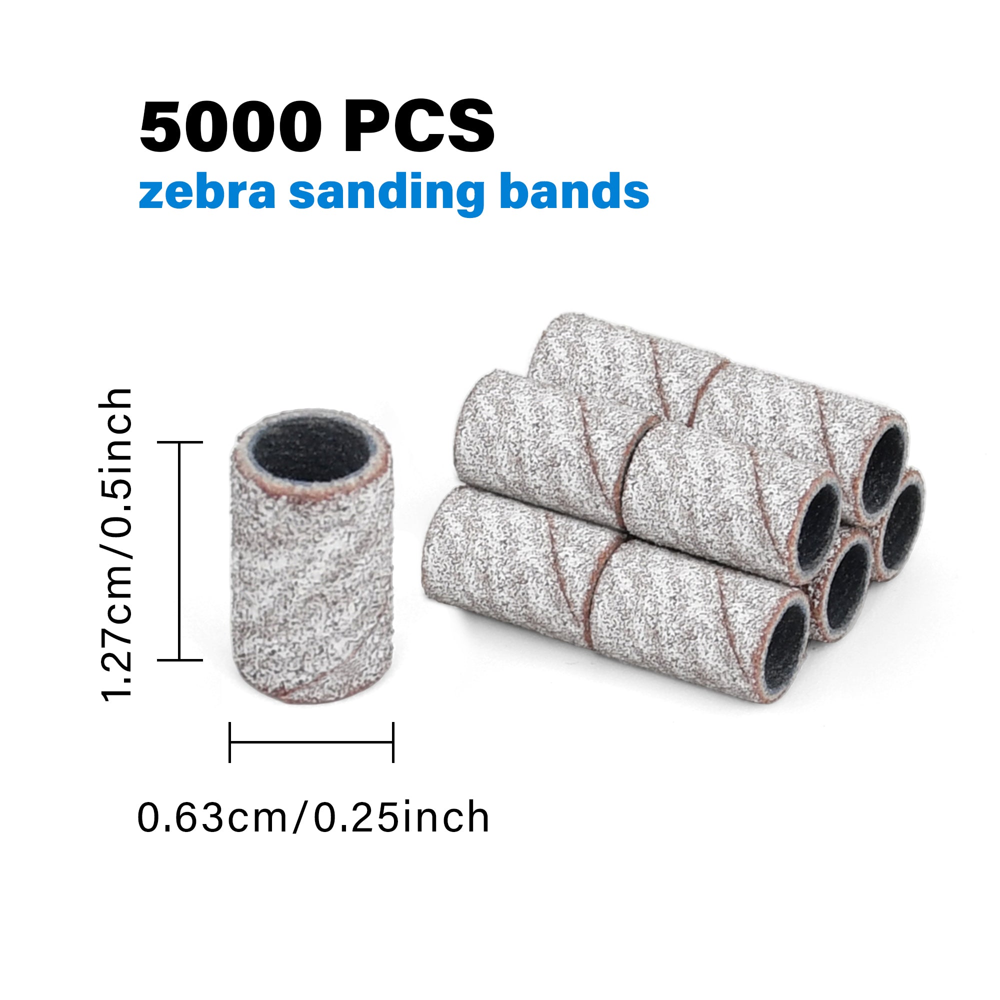 Footnice 5000 PCS Zebra Sanding Bands Bulk - Coarse/Medium/Fine 3 Grits 6.3mm Nail Drill Bits | Includes Mandrel | Salon Manicure Tools | USA Stock